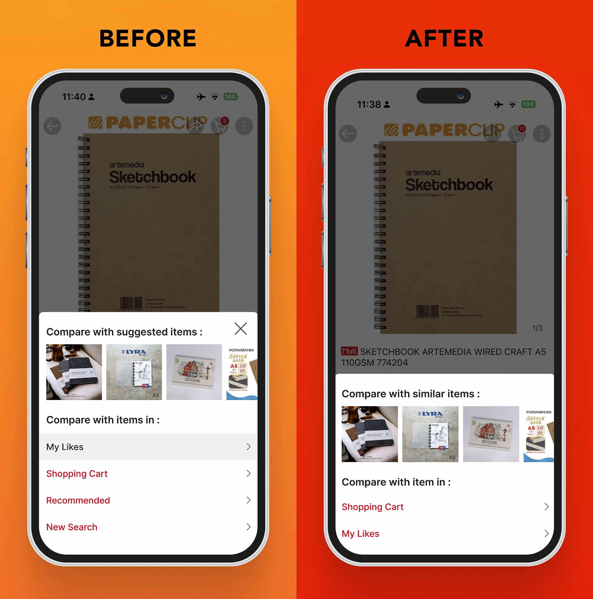 With 125 million visits per month, Shopee is Indonesia’s most visited online marketplace. Despite their popularity, buyers find it hard to decide which product to purchase and who to buy it from when faced with similar products. To help them easily discover authentic products and sellers, I designed a feature that lets them compare two products side by side.